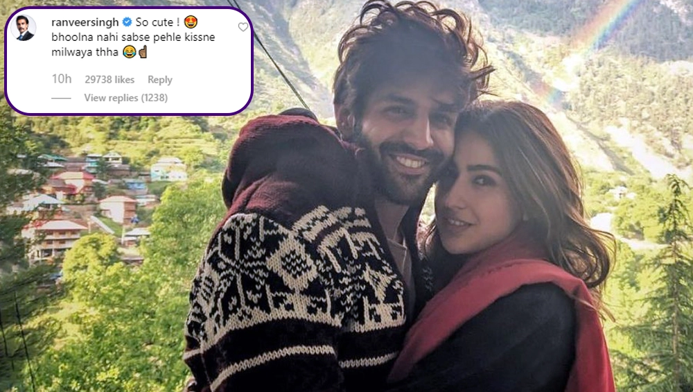 Sara Ali Khan and Kartik Aaryan are coming together for Imtiaz Ali’s upcoming film, which is a sequel to Love Aaj Kal. Yesterday (July 1), the young starlet shared the wrap up post in which the first picture was of the lead pair, who are also rumoured to be dating. Well, those link-up rumours are not affecting Sara and Kartik, and the handsome hunk Ranveer Singh has left an hilarious comment. We bet, it will leave you stunned. It's A Wrap for Sara Ali Khan and Kartik Aaryan Starrer Love Aaj Kal Sequel, Check Out Some Unseen Pictures from the Film's Shoot.