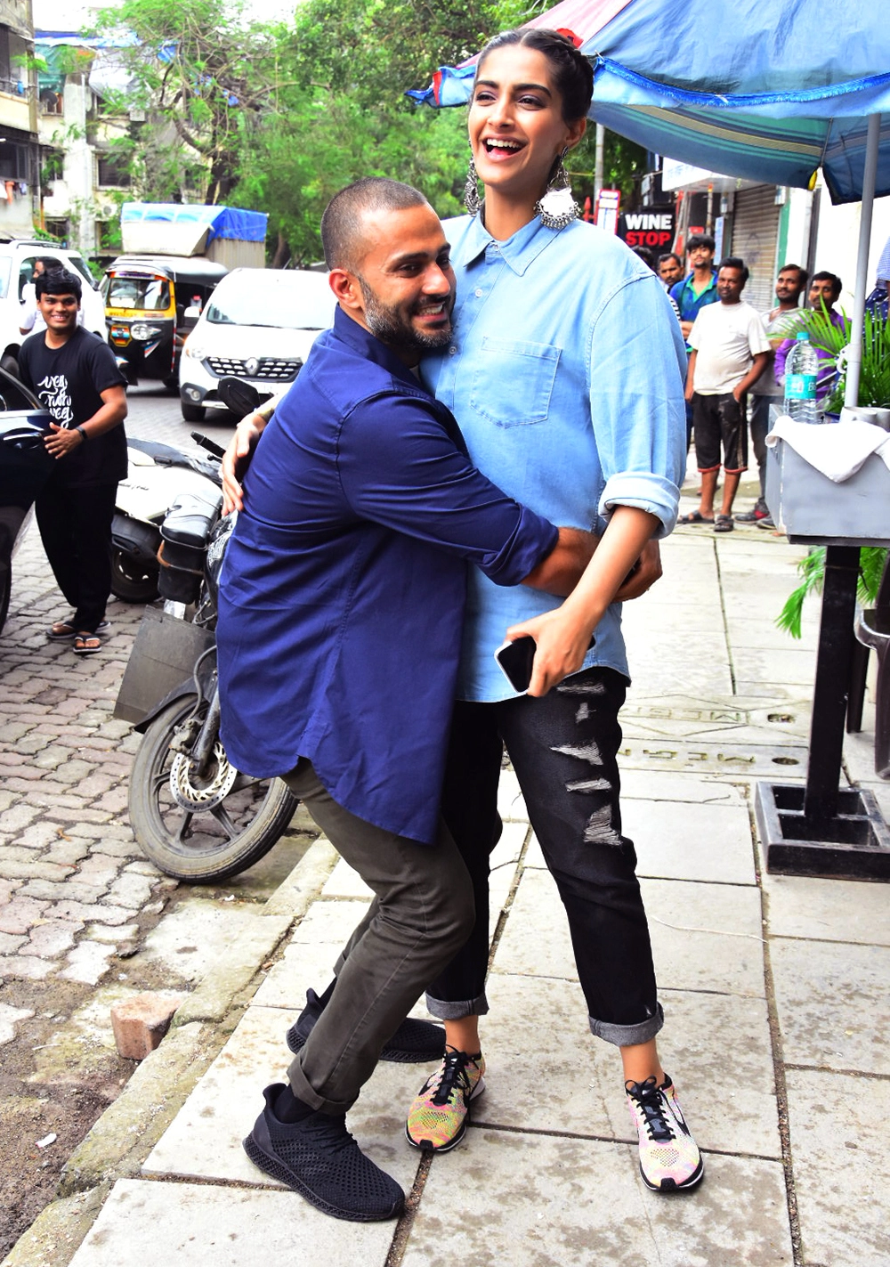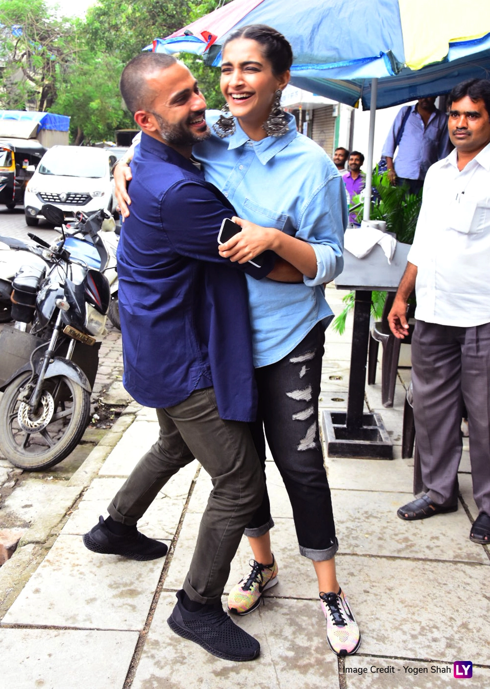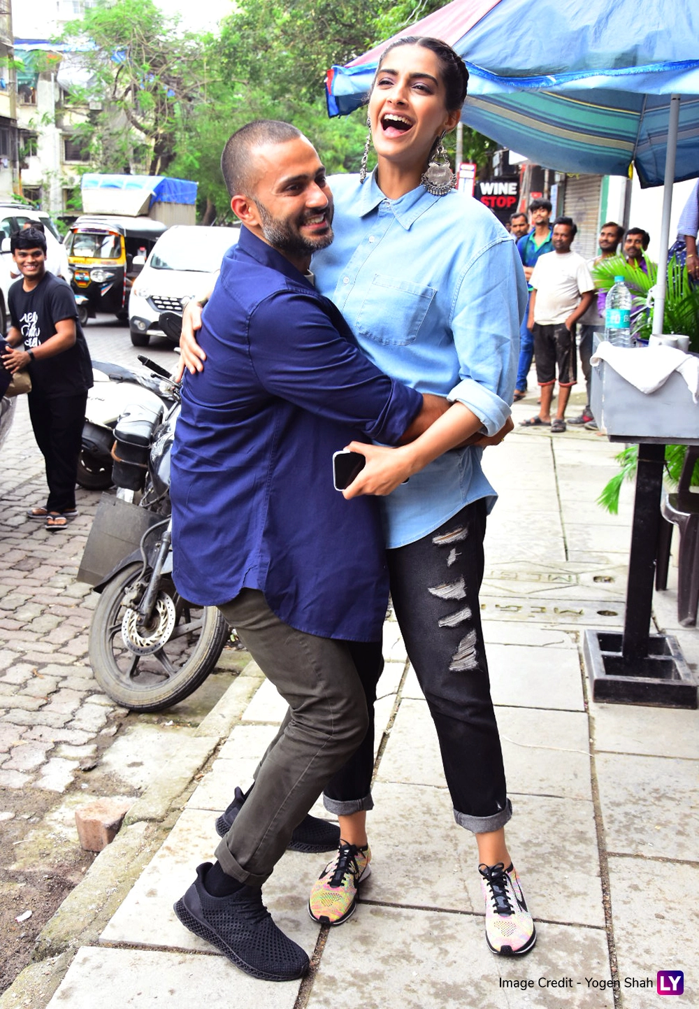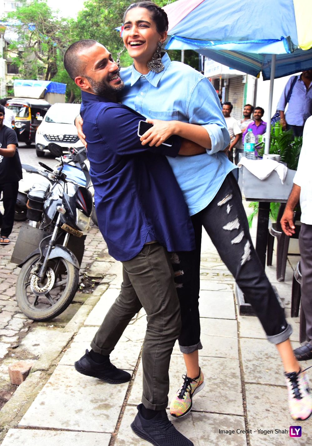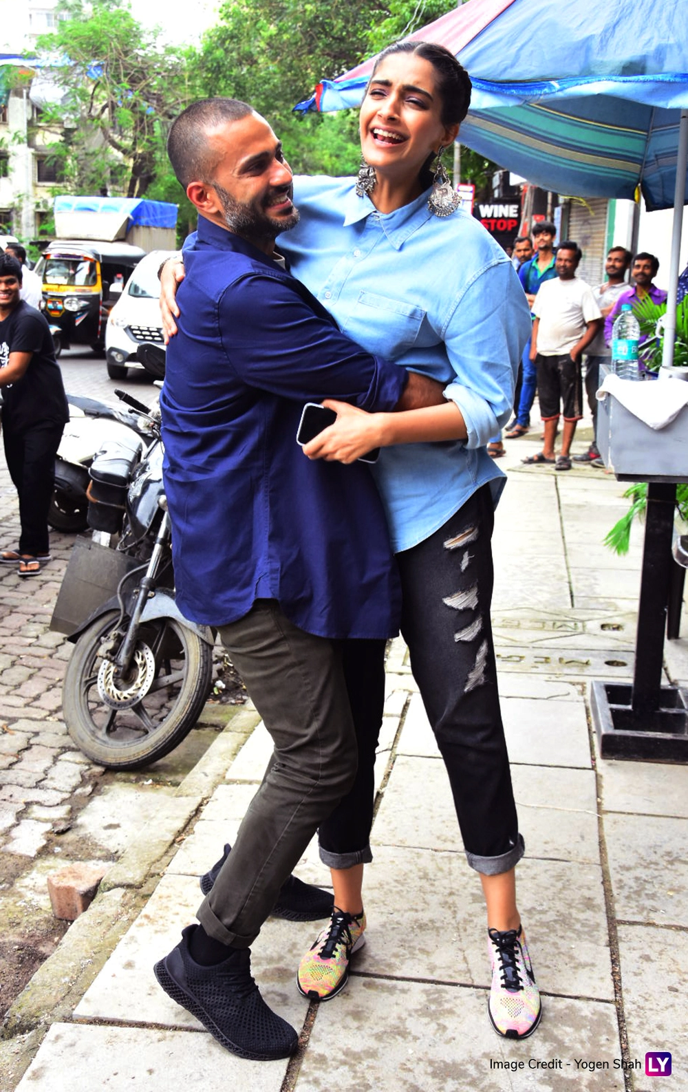 After Ranveer Singh, it's Anand Ahuja whose crazy antics are winning us over again and again! He has always been such a sport when the paps are around and for someone who comes from a non- filmy background to do that, is not easy. Coming back to these pictures, look at the happiness on Sonam's face. We bet she didn't expect Anand to do something like that. At least, not in front of the shutterbugs, in the middle of the road!