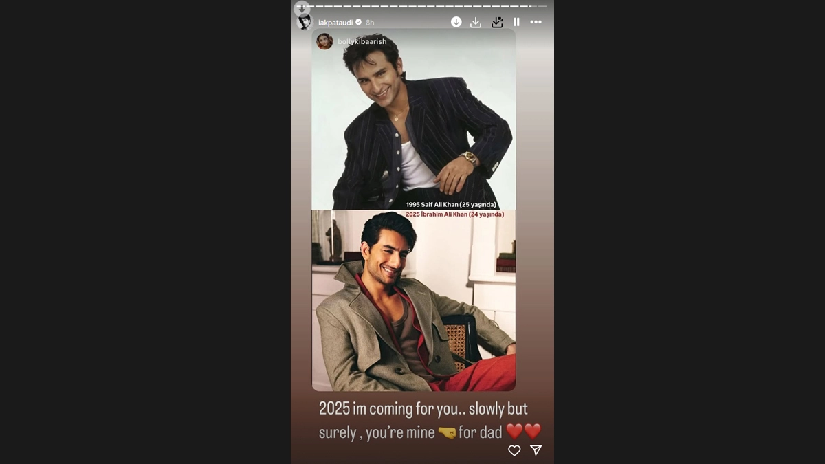 For the caption, the brother of actress Sara Ali Khan wrote: “2025 im coming for you.. slowly but surely, you're mine…. For dad.”