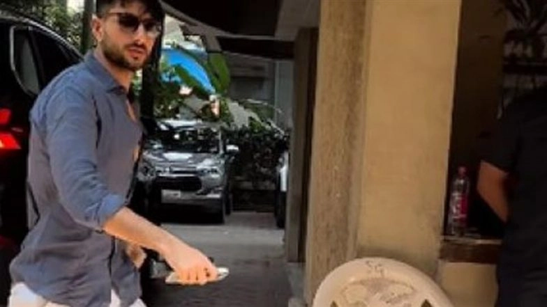 Ibrahim Ali Khan was recently papped outside his father Saif Ali Khan and Kareena Kapoor's Bandra home. He looked his usual cool self in a blue shirt, white trousers, and matching sneakers. Going by the video doing rounds on social media, Ibrahim did not talk to the paparazzi, but politely acknowledged them before going inside the building. Earlier today, Saif Ali Khan and Kareena Kapoor were also seen stepping out together for the first time since the horrific stabbing incident. The Aarakshan actor opted for a blue T-shirt and matching denim. Accompanying him, Kareena Kapoor looked breezy in a gray sweatshirt, black baggy trousers, and a sports cap. The Bollywood couple was surrounded by high security. Saif Ali Khan and Kareena Kapoor have reportedly been provided temporary police protection following the attack. Saif Ali Khan Stabbing Case Update: Mumbai Police Arrest Khukhmoni Jahangir From Nadia District, West Bengal.
