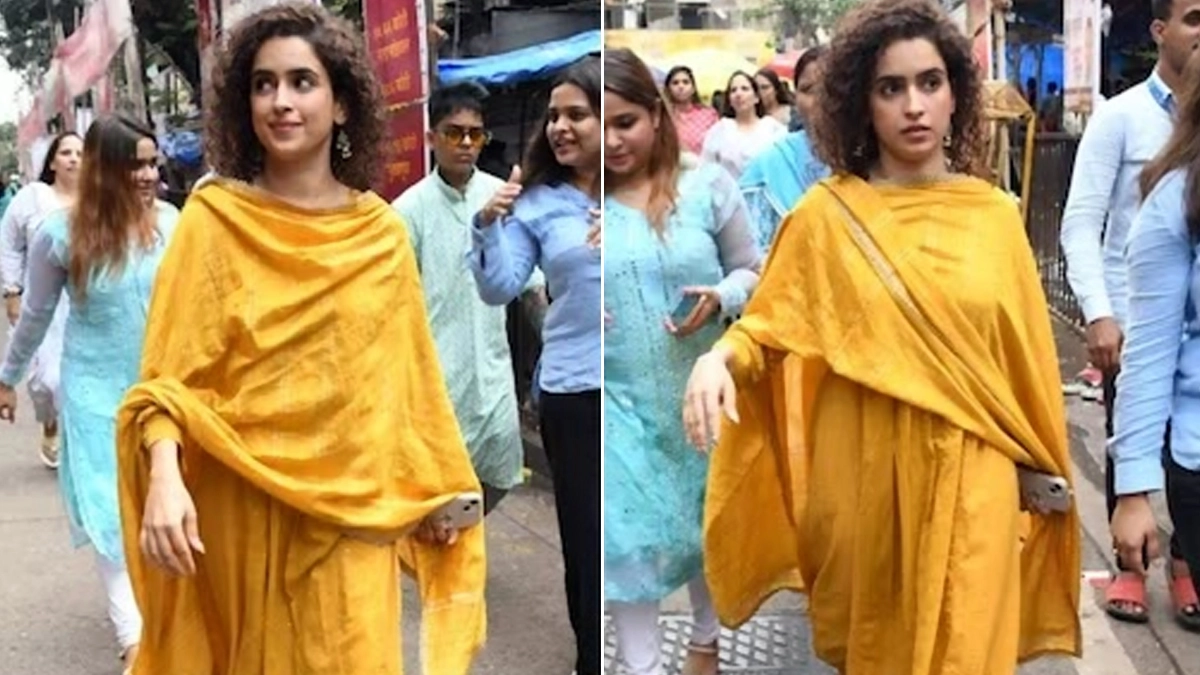Sanya was spotted wearing a mustard yellow coloured salwar suit and a matching dupatta. She kept her curly hair untied, and opted for minimal makeup. She accessorised the look with silver earrings and wore juttis. Sanya posed with the idol of Lord Ganesh and smiled for the camera.