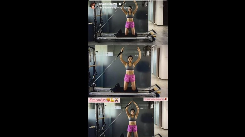 Taking to Instagram Stories, Sara shared a boomerang video, wherein we can see her doing workout in a grey sports top and pink shorts. She captioned it as: "#monday", followed by a strong arm emoji.