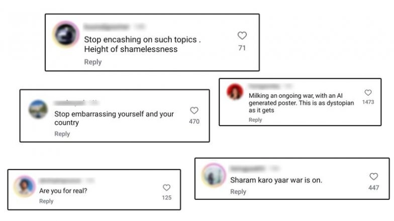 Given the current situation in the country, it was expected that netizens wouldn't respond positively to the movie announcement. With our armed forces risking their lives to protect the nation from external threats, announcing a film about the ongoing military conflict felt premature and deeply insensitive. Reacting to the Operation Sindoor movie poster shared on paparazzi page Viral Bhayani on Instagram, a netizen wrote, "Milking an ongoing war with an AI-generated poster. This is as dystopian as it gets." Another user commented, "Sharam karo yaar, war is on." (Have some shame, the war is on). Indian Airbases Undamaged: India Fact-Checks Pakistan, Debunks Pakistani Propaganda With Time-Stamped Airbase Images.