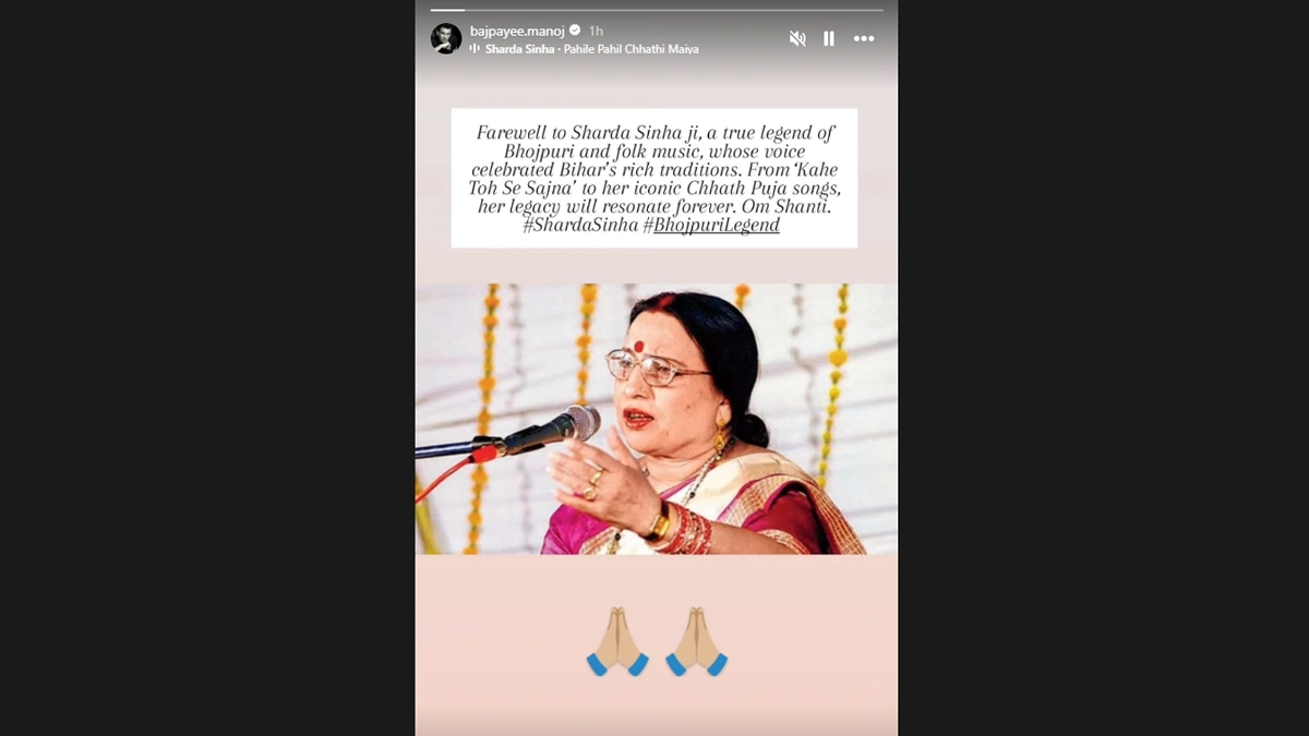 He then shared a farewell post the late singer on his Instagram story, which read: “Farewell to Sharda Sinha ji, a true legend of Bhojpuri and folk music, whose voice celebrated Bihar's rich traditions.”