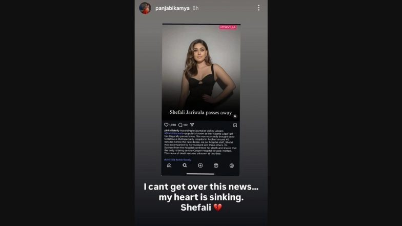 TV actress and Bigg Boss 7 fame Kamya Punjabi also shared her grief about Shefali Jariwala's passing online. Taking to her Instagram stories, the actress shared a screenshot of a post about Shefali's untimely passing and wrote, "I can't get over this news... My heart is sinking. Shefali (heartbroken emoji)."