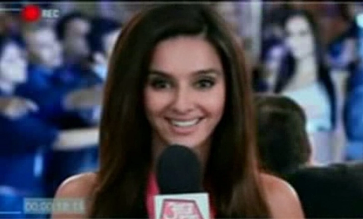 In this Salman Khan wrestling match, Shibani plays the role of a news anchor; guess the channel? Aaj Tak it is!