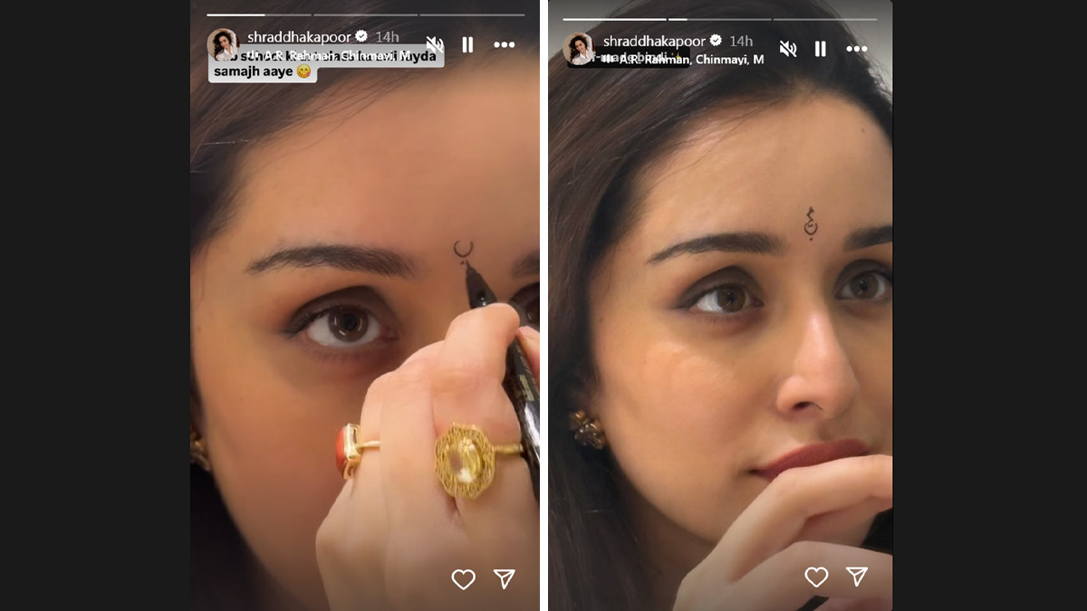Bollywood actress Shraddha Kapoor showcased her art skills as she made a “self-made bindi.” Shraddha took to Instagram stories, where she shared a video of her making a bindi with a black eyeliner. The bindi design resembles a curved line, a small dot beneath, and an upward arrow-like shape at the top. Shraddha Kapoor Makes LinkedIn Debut; Check Out Her First Post After Account Was Flagged As ‘Fake’.