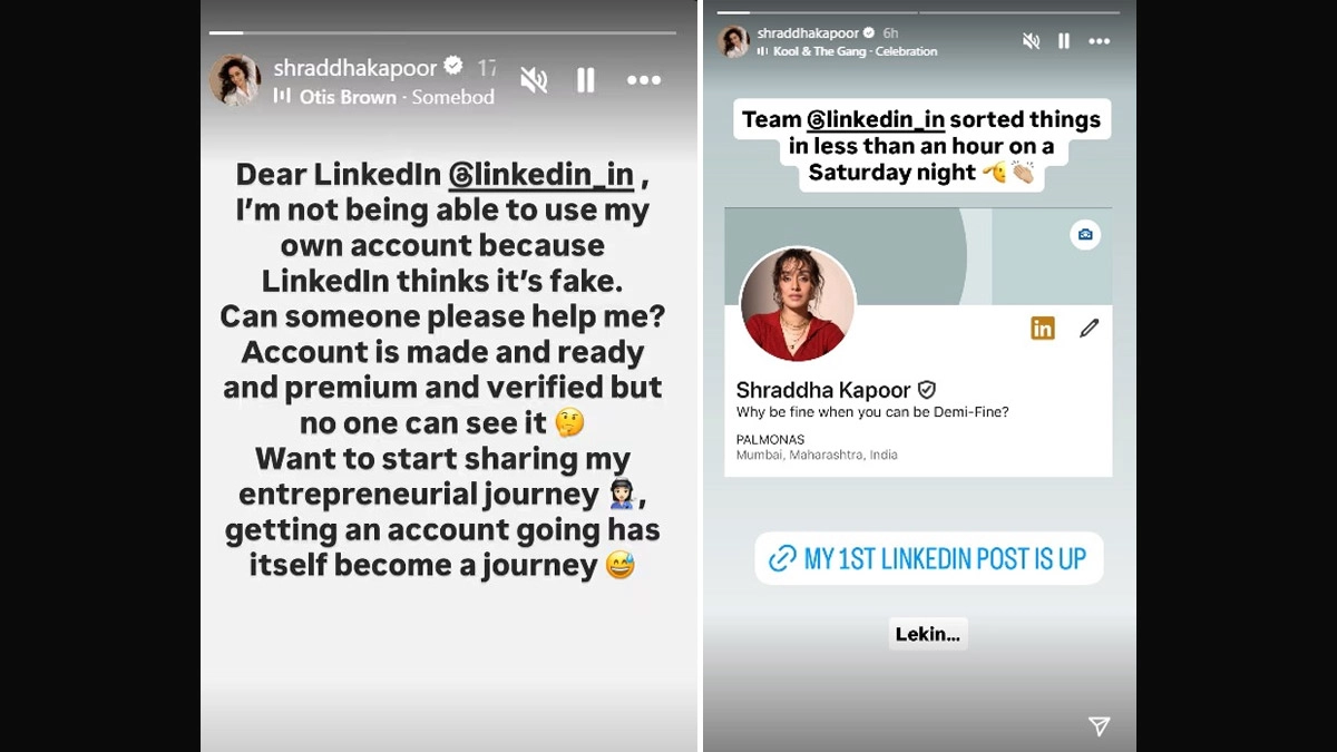 On Saturday, Shraddha sought LinkedIn's help after she was unable to use her account as it was flagged as fake. The Tu Jhoothi Main Makkaar actress dropped a long note on her Instagram handle. Tagging the networking platform, Shraddha penned: "Dear LinkedIn @linkedin_in, I’m not able to use my own account because LinkedIn thinks it’s fake. Can someone please help me? (sic)" she wrote. "Account is made, premium and verified, but no one else can see it. I want to start sharing my entrepreneurial journey, but getting an account itself has become a journey," she added. LinkedIn New Feature Update: Microsoft-Owned Professional Networking Platform Launches New AI Feature for Job Seekers and Recruiters.