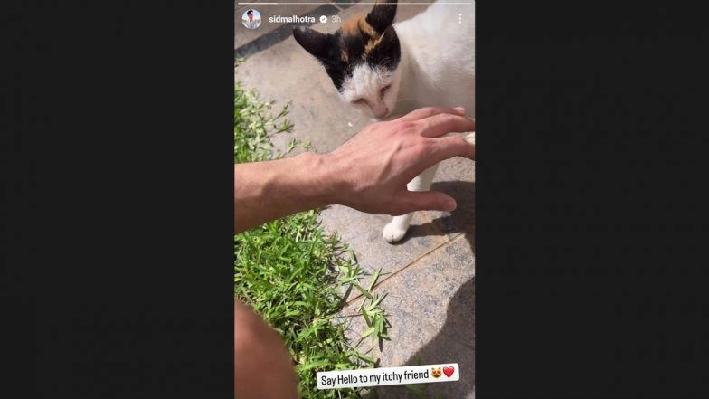 Bollywood star Sidharth Malhotra on Monday shared an absolutely adorable video featuring his charming and 'itchy' furry friend, showcasing their heartwarming display of affection. Taking to Instagram Stories, the heartthrob Sidharth delighted his 30.5 million followers with an irresistibly cute video featuring his beloved cat. Kiara Advani’s Elegant Anarkali and Sidharth Malhotra’s Stylish Kurta Turn Heads at Ambani’s Ganesh Chaturthi Celebration (View Pic).