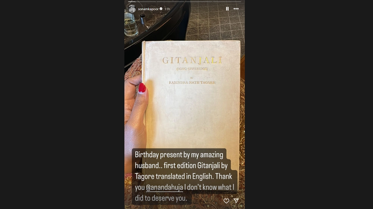 "Birthday present from my amazing husband... First edition of 'Gitanjali' by Tagore, translated into English. Thank you @anandahuja. I don’t know what I did to deserve you," Sonam wrote. Sonam married her longtime beau Anand in 2018 after dating for nine years. The couple welcomed their first child, a son named Vayu, in 2022. Actress Kareena Kapoor Khan, who worked with Sonam in the film Veere Di Wedding, also took to her Instagram stories and wished her.