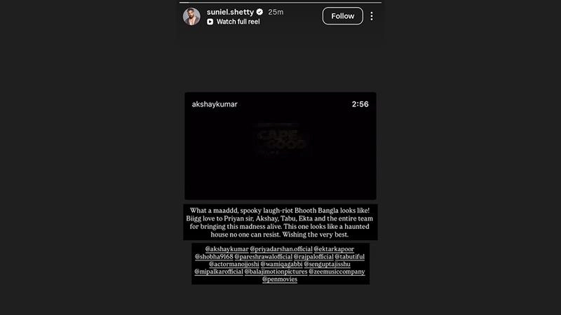 Taking to his social media, Suniel Shetty shared the trailer of Bhooth Bangla and wrote the caption, "What a maaddd, spooky laugh-riot Bhooth Bangla looks like! Biigg love to Priyan sir, Akshay, Tabu, Ekta and the entire team for bringing this madness alive. This one looks like a haunted house no one can resist. Wishing the very best. @akshaykumar @priyadarshan.official @ektarkapoor @shobha9168 @pareshrawalofficial @rajpalofficial @tabutiful @actormanojjoshi @wamiqagabbi @senguptajisshu @mipalkarofficial @balajimotionpictures @zeemusiccompany @penmovies" Moreover, Suniel Shetty has delivered many superhit films with director Priyadarshan, such as Hera Pheri, Yeh Teraa Ghar Yeh Meraa Ghar, Hulchul, Chup Chup Ke, De Dana Dan, and many more. From Dream Cast to Akshay Kumar Returning to Comedy Avatar, Here’s Why ‘Bhooth Bangla’ Is the Most Awaited Film!