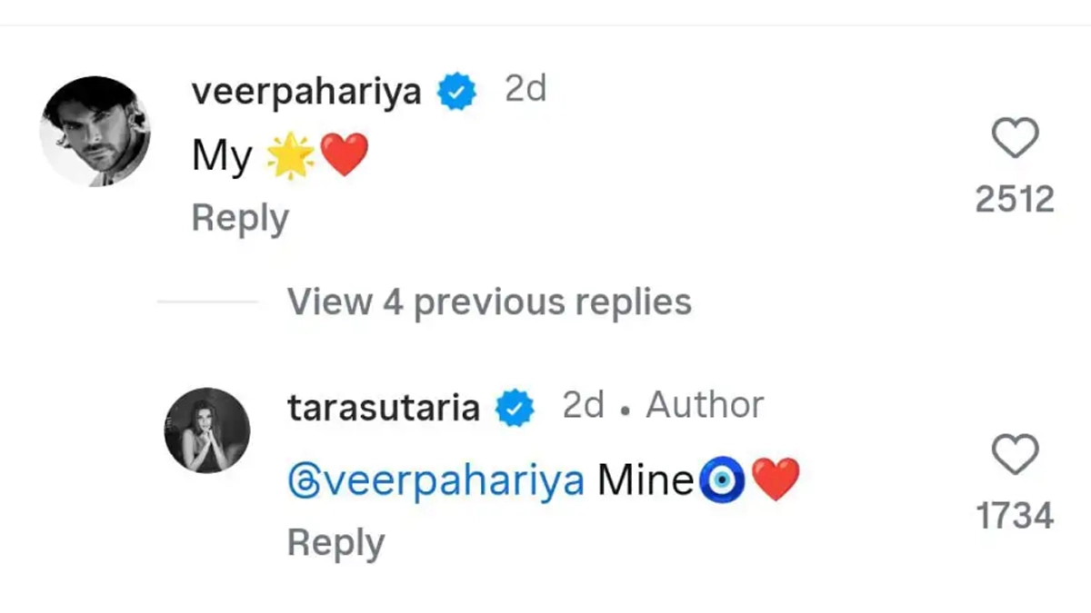 Their social media PDA also hasn’t gone unnoticed. A few days ago, Tara posted some glamorous pictures with singer AP Dhillon. But it was Veer’s comment that stood out. He wrote “My” with a star and red heart emoji. Tara replied, “Mine” with a red heart and evil eye emoji, a cute exchange that made fans go “aww.” Is Tara Sutaria Dating Veer Pahariya Months After Link Up Rumours With Arunoday Singh? Here’s What We Know.