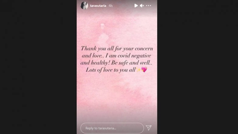 Sutaria, however, never confirmed the reports. Taking to Instagram Stories, the Student of the Year 2 actor gave a health update to fans and thanked them for their wishes.
