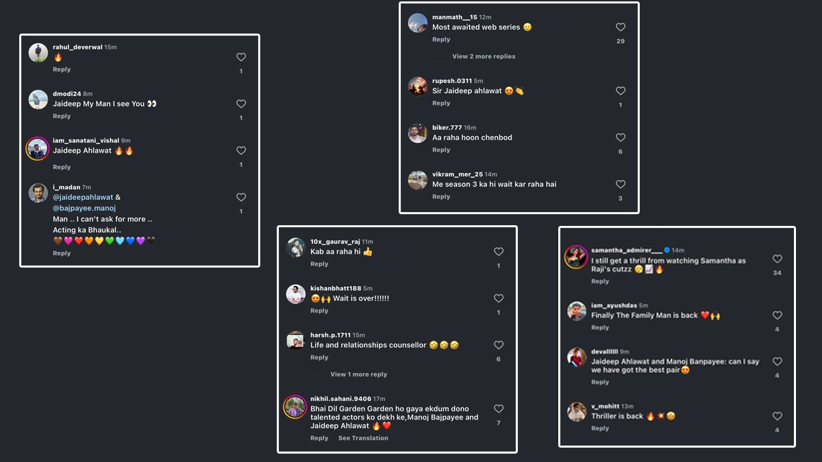 “Finally, The Family Man is back,” one fan commented, echoing the sentiments of many who have been counting down the days since Season 2 ended. Another user simply put it as, “Thriller is back,” while one more couldn’t hold back their emotions, writing, “Most awaited web series.” Some fans couldn’t help but revisit their favorite moments from the show’s earlier seasons. One user wrote, “I still get a thrill from watching Samantha as Raji’s cutzz,” fondly recalling Samantha Ruth Prabhu’s unforgettable role as the strong antagonist in Season 2. Clearly, the show has left a lasting mark on viewers' hearts.