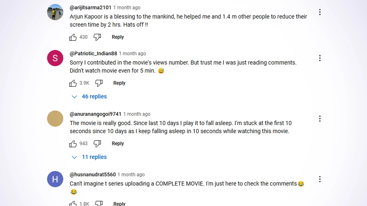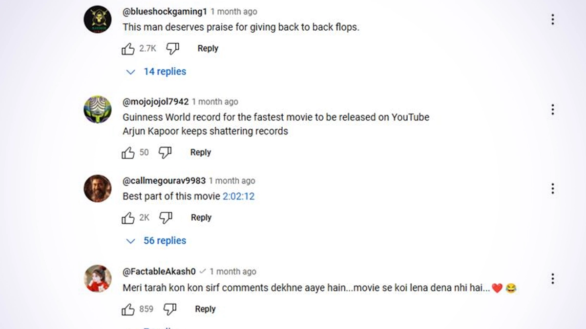 Initially slated for an OTT release on Netflix, The Lady Killer saw its plans cancelled, leading to its eventual debut on YouTube on September 2, 2024. As of now, the film has garnered over 2.5 million views on the platform, totaling 2,547,356 views just shy of two months post-release. Despite this viewership, the Arjun Kapoor and Bhumi Pednekar starrer has failed to garner positive reviews. Viewers have expressed their disappointment in the comments section, sharing harsh critiques and unfavourable opinions about the film. Check out some of the comments below: The Lady Killer Trailer: Arjun Kapoor and Bhumi Pednekar Look Promising in Ajay Bahl's Mysterious and Gory Directorial (Watch Video).