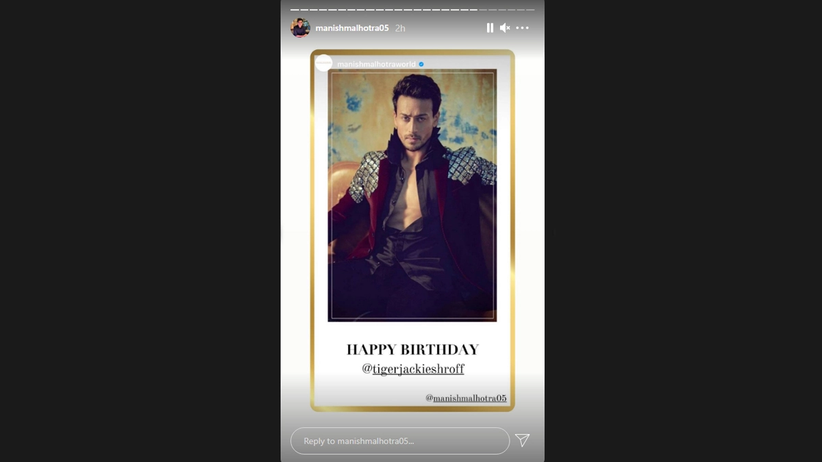 Ananya Panday penned down a quirky birthday wish for Tiger as she shared a picture with him striking a dancing pose. She wrote, "Happy birthday (Tiger emoticon)!! I'll try not to scare you with my hectic dance moves this year (added a winking emoticon)." Celebrity costume designer Manish Malhotra took to Instagram and shared a stunning picture of the birthday boy and wrote, "Happy birthday Tiger Shroff stay this fabulous always."