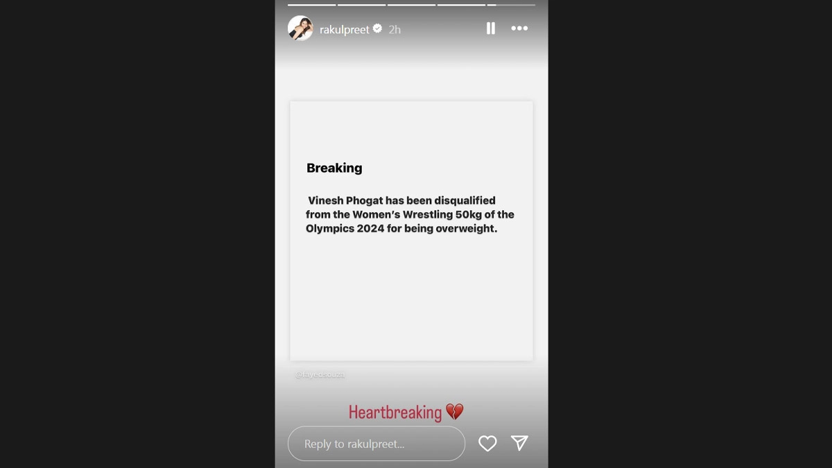 Bhumi Pednekar also shared her sentiments on Instagram, stating, "You are and will always be a winner @vineshphogat Itni jaan aur himmat bahut kam mein hoti hai," highlighting Phogat's courage and strength. ' Rakul Preet Singh, shared her feelings on Instagram stories, simply noting, "Heartbreaking," accompanied by a broken heart emoticon.