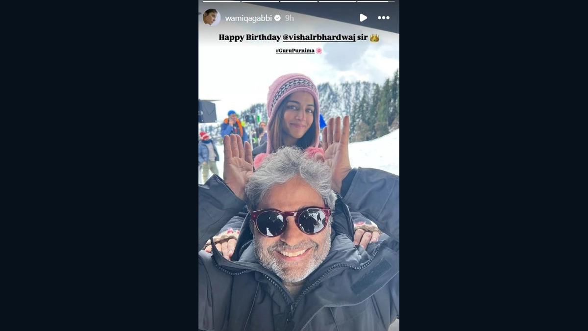 The picture showcased Wamiqa and Vishal in a snowy outdoor location. The filmmaker is smiling and could be seen making a bunny ears gesture with his hands over his head. Wamiqa had her hands placed on the filmmaker's shoulders and smiled sweetly at the camera. The picture seemed to have been taken during the shoot of the series Charlie Chopra and The Mystery of Solang Valley, which is based on a crime mystery novel by Agatha Christie, The Sittaford Mystery. For the caption, Wamiqa wrote: “Happy Birthday @vishalrbhardwaj sir #GuruPurnima.”