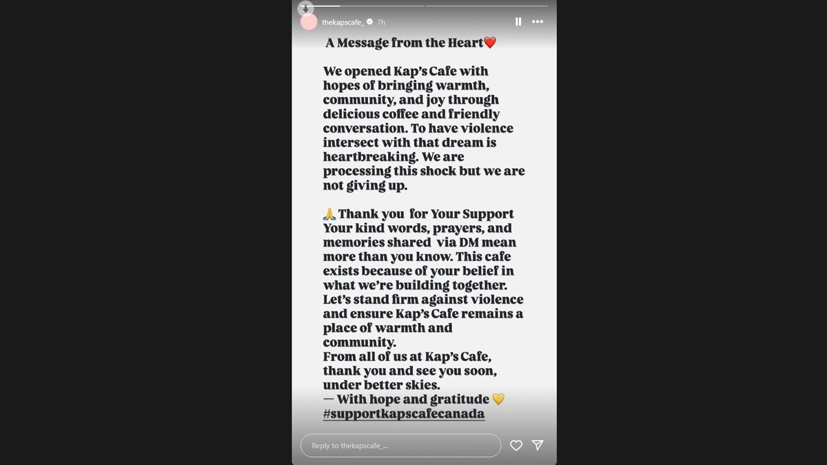 The official Instagram account of Kaps Cafe on their stories section issued a statement, which was tagged as a “message from the heart”. “A Message from the Heart. We opened Kap's Cafe with hopes of bringing warmth, community, and joy through delicious coffee and friendly conversation. To have violence intersect with that dream is heartbreaking. We are processing this shock but we are not giving up.” Gunshots Fired at Kapil Sharma’s Newly Opened Kap’s Cafe in Canada; Khalistani Terrorist Harjit Singh Laddi Claims Responsibility – Attack Caught on Camera (Watch Video)