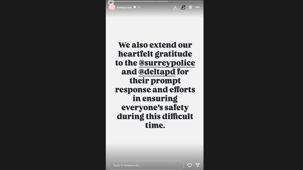 The statement further thanked everyone for the support and prayers. “Thank you for Your Support Your kind words, prayers, and memories shared via DM mean more than you know. This cafe exists because of your belief in what we're building together. Let's stand firm against violence and ensure Kap's Cafe remains a place of warmth and community.” “From all of us at Kap's Cafe, thank you and see you soon, under better skies. - With hope and gratitude #supportkapscafecanada.” The statement also extended heartfelt gratitude to the Surrey Police. “We also extend our heartfelt gratitude to the @surreypolice and @deltapd for their prompt response and efforts in ensuring everyone's safety during this dificult time.” Kapil Sharma’s Cafe Attacked in Canada: ‘KAP’S CAFE’ Comes Under Gunfire in British Columbia; Harjit Singh Laddi Claims Responsibility (Watch Video)