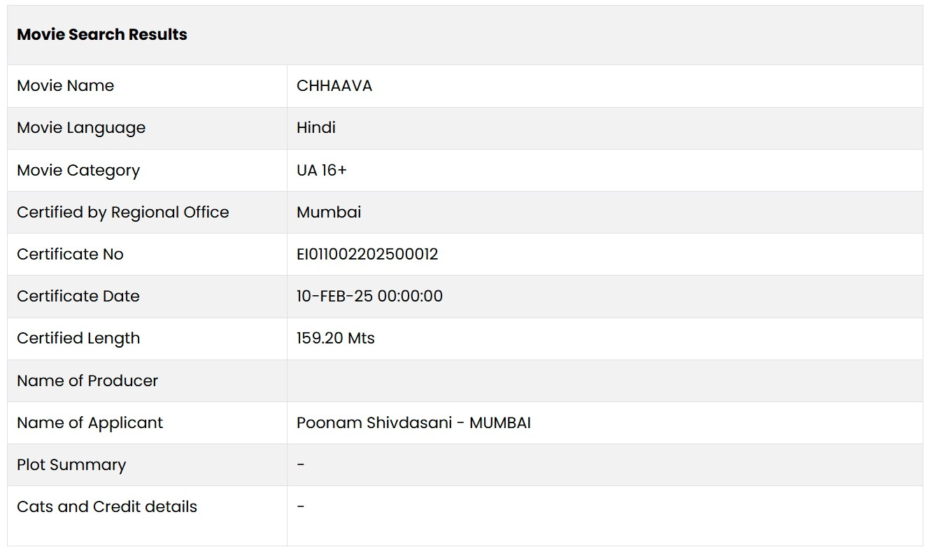 Chhaava was certified on February 10, 2025, with a U/A 16+ rating. This means children below 16 can watch the film if accompanied by parents or legal guardians, such as teachers.