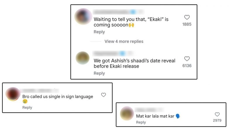 A user made reference to the post's caption and wrote, "Waiting to tell you that Ekaki is coming soon." Another wrote, "We got Ashish's shaadi date reveal before Ekaki release."