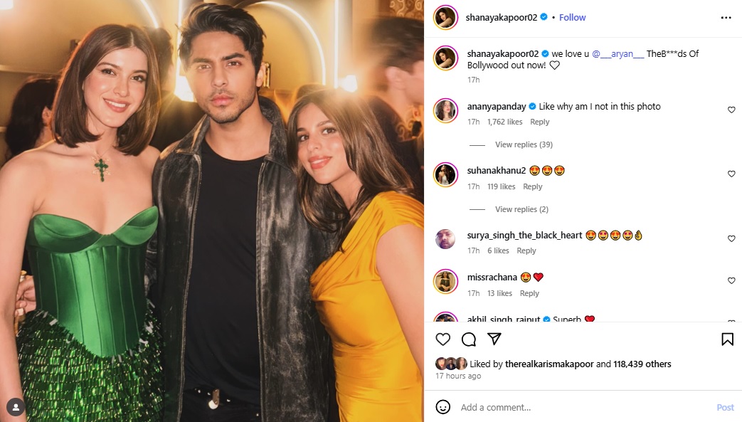 Ananya Panday Reacts After Shanaya Kapoor Shares Pic With Suhana and Aryan Khan