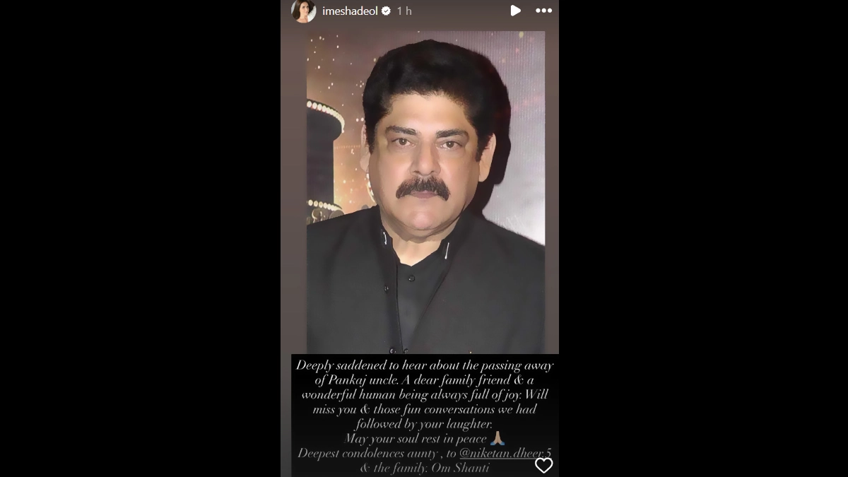 Esha, sharing a picture of the late veteran actor on her social media account, penned an emotional farewell note. She wrote, “"Deeply saddened to hear about the passing away of Pankaj uncle. A dear family friend and a wonderful human being always full of joy. Will miss you & those fun conversations we had followed by your laughter. May your soul rest in peace. Deepest condolences, aunty, to @nikitandheer and the family. Om Shanti." 'Mahabharat' Fame Pankaj Dheer Passes Away After Cancer Battle.