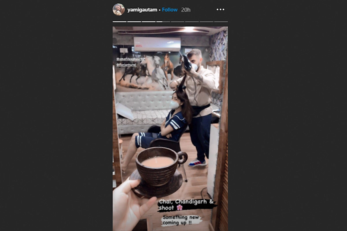 Actress Yami Gautam has started shooting in Chandigarh amid the Covid pandemic. Taking to Instagram stories, Yami posted a picture of herself getting her hair done for a shoot. "Chai, Chandigarh and shoot. Something new coming up," she wrote. In the image, Yami is seen wearing a mask. Yami Gautam is Absolutely and Delightfully Charming as the Cover Girl of Elle India’s New Digital Issue (View Pics)