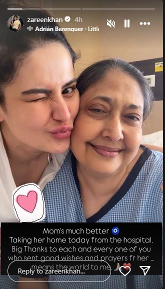 On Friday, Zareen informed that her mother has been admitted to the hospital. Urging everyone to pray for her speedy recovery, she took to the Stories section of her Instagram and wrote, "Mom admitted to the hospital. Please keep her in your prayers (sic)."