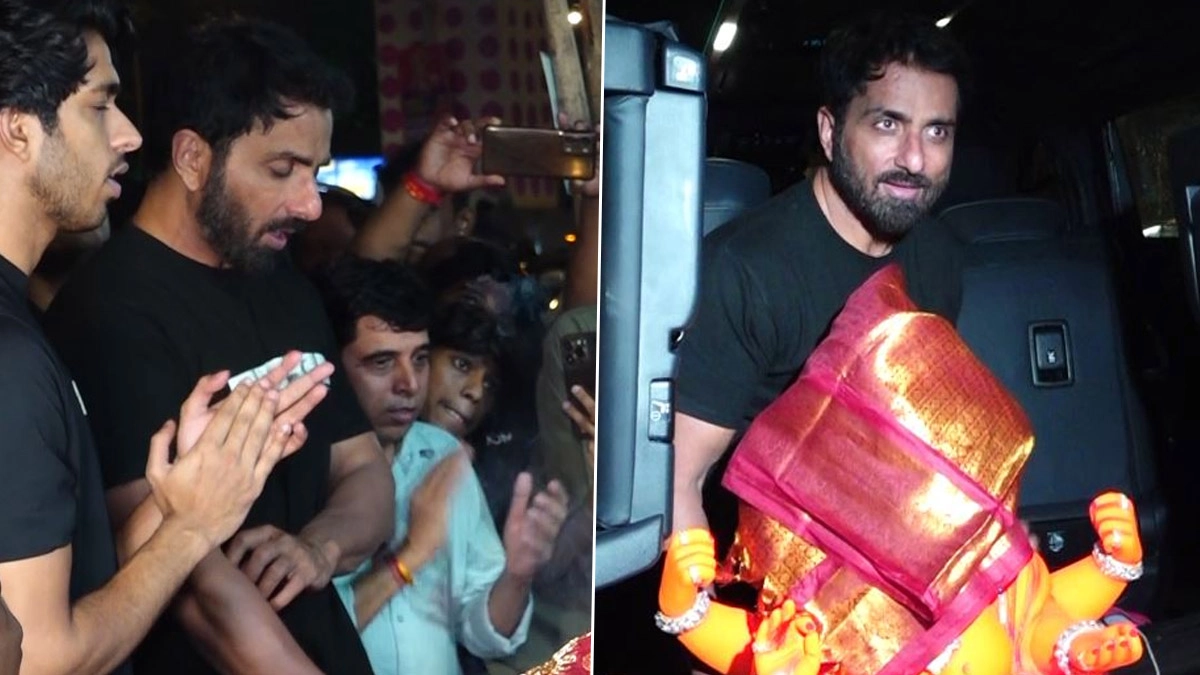 The Bollywood celebs are all excited to welcome Lord Ganesha at their homes on the eve of Ganesh Chaturthi 2025. With a day away from Ganesh Chaturthi, festive preparations are in full swing across the country, including in the film industry. The festival holds a special place in the hearts of many Bollywood celebrities. Bollywood actor Sonu Sood welcomed the Lord Ganesh idol at his home after performing the necessary pooja rituals in Mumbai. Ganesh Chaturthi 2025: ICC Chairman Jay Shah Wishes Fans ‘Peace and Prosperity’ on Auspicious Occasion, Ankita Lokhande, Other B-town Celebs Welcome Lord Ganesha on the Eve of Ganesh Chaturthi.