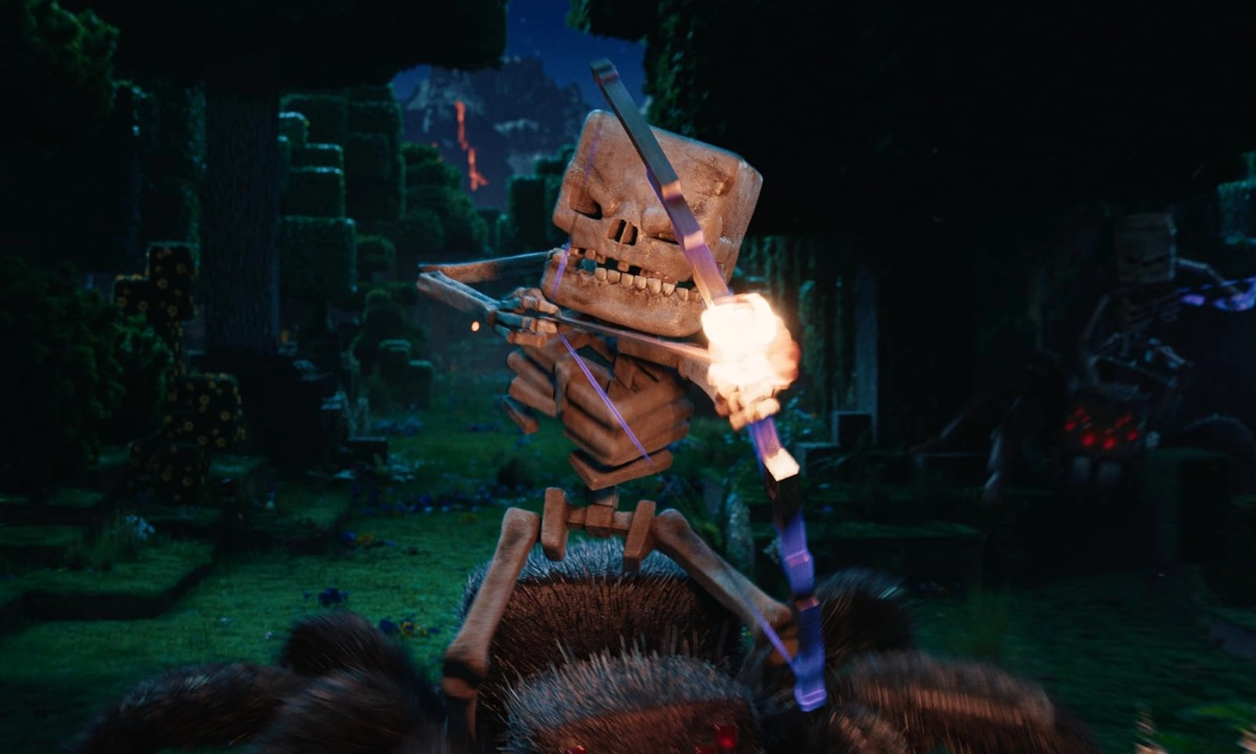Okay, let’s talk about the supposedly appealing aesthetics of the movie. I guess the VFX team has done a pretty decent job recreating this cube world and its varied residents, who get two introduction sequences - the initial rush job by Steve in the opening act and then Steve acting as a guide to the other protagonists, covering aspects that weren’t mentioned earlier. I don’t know how the dynamics of this world work - Steve wills something into existence, but that power isn’t always invoked when needed. At night, skeletons and zombies attack the heroes, which I assume is some sort of reference to the Minecraft games. But despite having little to no knowledge of this world, I was made completely uninterested in it because the filmmakers assumed people would watch it only if they had played the games - a huge mistake.