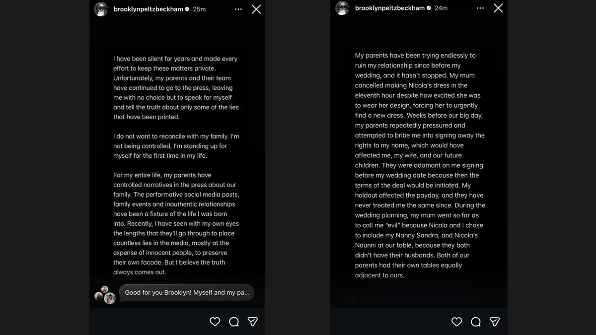 At the centre of Brooklyn’s claims is what he referred to as “Brand Beckham,” which he alleged prioritised public image and media narratives over genuine personal relationships. “For my entire life, my parents have controlled narratives in the press about our family,” Brooklyn wrote. “The performative social media posts, family events, and inauthentic relationships have been a fixture of the life I was born into.” He added that stepping away from the family’s public environment has significantly improved his mental well-being, claiming the “overwhelming anxiety” he carried for years has since disappeared.