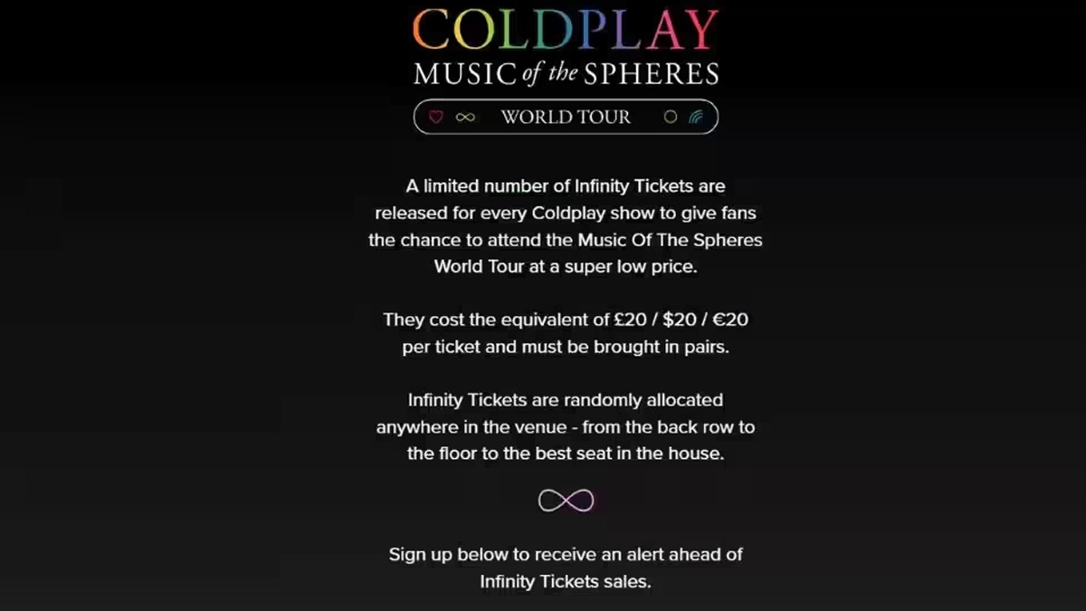 What's Coldplay Infinity Ticket & It's Price?