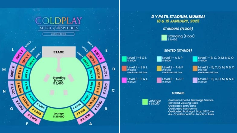 Coldplay is set to rock Mumbai on January 18 and 19, 2025! Due to the incredible response, the band dropped a surprise announcement for an additional concert on January 21. Fans can snag passes starting at 2 pm on Sunday via BookMyShow. In Viagogo, prices are INR 97,680, INR 101,437, INR 112,708 and more for different levels. Coldplay Mumbai Concert 2025: Dates, Venue and Ticket Prices – All You Need To Know About the British Rock Band’s Shows in India.