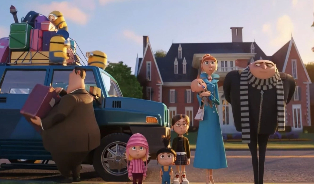 After angering a former schoolmate turned supervillain, Maxime Le Mal (Will Ferrell), by getting him arrested, Gru (Steve Carell) has to go into hiding with his family, now also consisting of his baby son Gru Jr, when Maxine escapes from prison. Through the Witness Protection Act, Gru and his family are relocated to an idyllic neighbourhood with new identities.