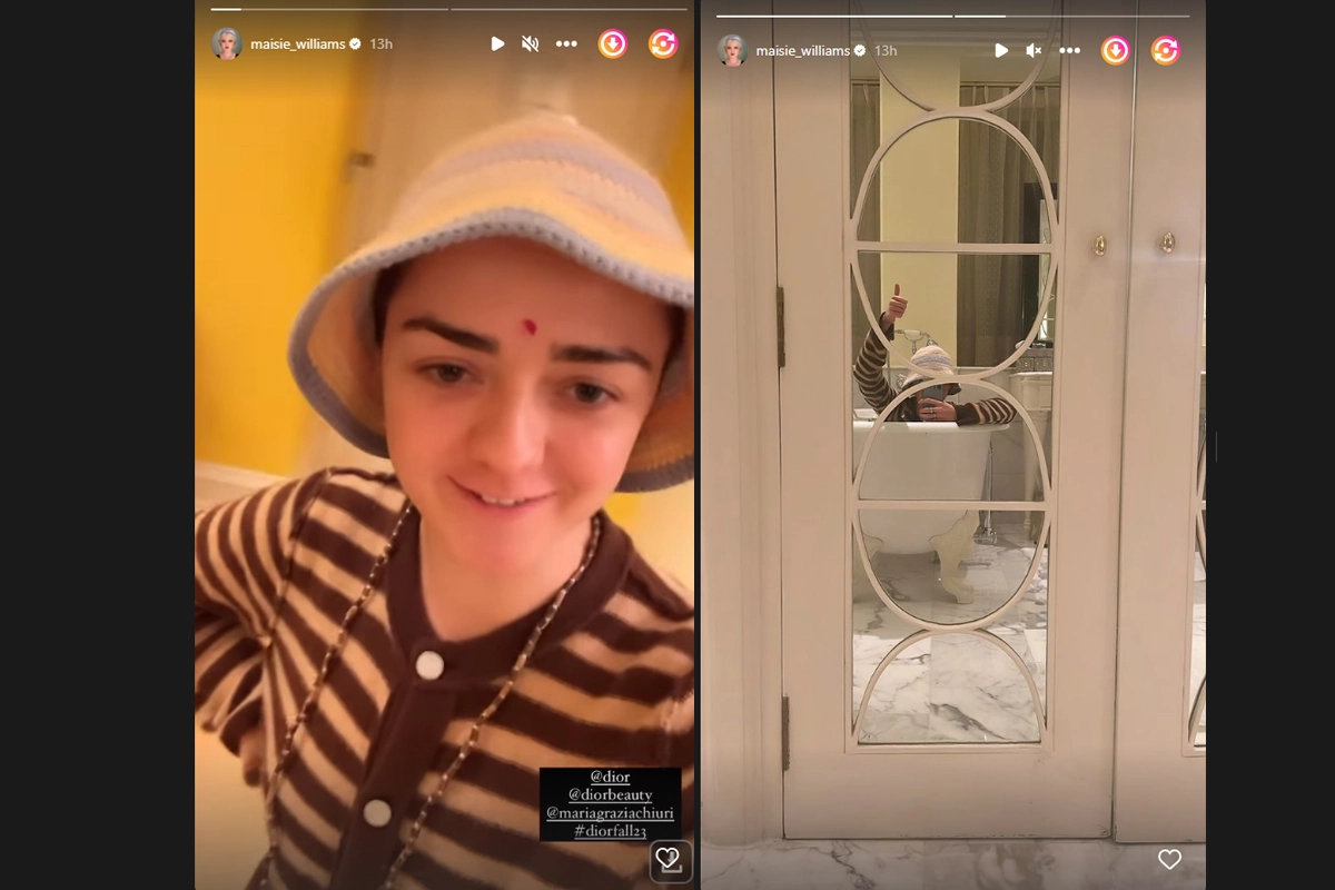She points at a picture of Lord Krishna on a wall and then pans the camera on floral rangolis on the floor. "I just got to Mumbai and I am losing my mind a little bit," she says. Maisie runs to the dining table which has goodies from Dior. "So many little gifts," she said. She then shares a picture of herself sitting in a bathtub and posed with a thumbs up sign.
