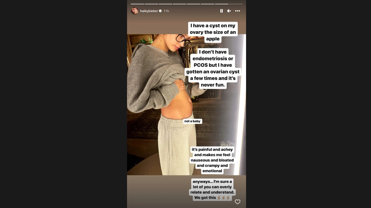 "I have a cyst on my ovary the size of an apple," she wrote on her Instagram stories. "I don't have endometriosis or PCOS but I have gotten an ovarian cyst a few times and it's never fun." "It's painful and achey and makes me feel nauseous and bloated and cramps and emotional," she continued. "Anyway, I'm sure a lot of you can overly relate and understand. We got this." Justin Bieber Wishes Wifey Hailey Bieber on Her Birthday With Mushy Pictures On Instagram and Says ‘Obsessed With Everything About You’.