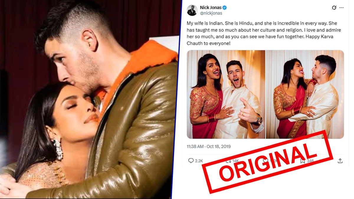 The fake and malicious image of a message going viral about what Nick Jonas said about Priyanka Chopra and her religion on Twitter/X said, “my wife is indian. she is Hindu, and she is incredible in Every way. she has taught me so much about her culture and religion. iLove and admire her so much, and as you can see we have fun together. happy karva chauth to ME everyone! (sic)” The image further said that the tweet was posted on “9:11 AM Oct 18, 2019” and via “Twitter for iPhone”.