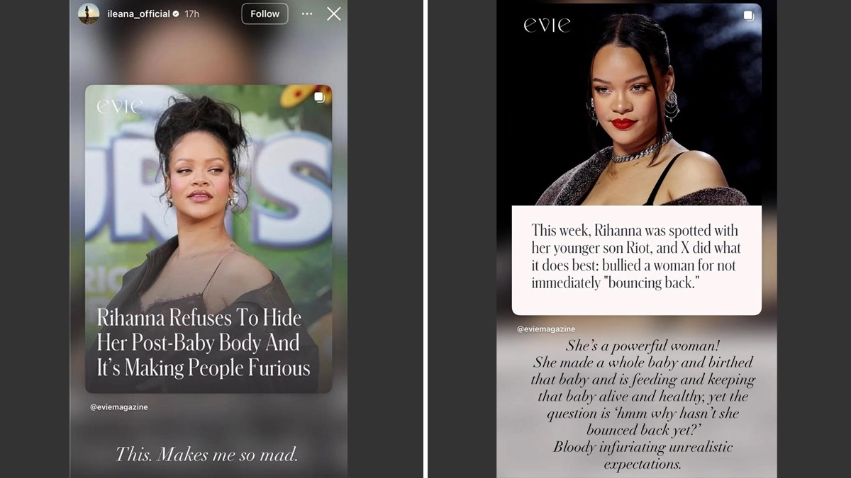 The post was by a magazine, which read, “This week, Rihanna was spotted with her younger son Riot, and X did what it does best: bullied a woman for not immediately ‘bouncing back.’ Sharing her strong views, Ileana, who is a mother of two wrote that the online criticism was “bloody infuriating” and highlighted the absurdity of expecting women to “bounce back” right after giving birth. Ileana wrote, “She's a powerful woman!”