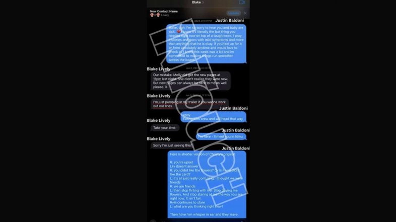 The text screenshots obtained by InTouchWeekly showed Lively suggesting ways to make her character appear sexier. She wrote, “Will show you both ways but beanie is much sexier.” Baldoni's lawsuit claims that when he used the word "sexy," he was only referring to her character in the film, not objectifying her. In the alleged text, Lively wrote: “I’m just pumping in my trailer if you wanna work out our lines.” Baldoni’s legal team stated that he has children and he is “comfortable around br—stfeeding mothers, and Lively seemed equally comfortable.” The filmmaker refuted the actress’ claim and said that it was “an activity she often conducted openly,” including during production meetings. ‘It Ends With Us’ Conflict: Justin Baldoni Sues New York Times for USD 250 Million Over Blake Lively Coverage, News Organisation Responds.