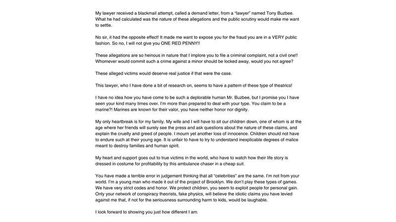 In his statement, Jay-Z slammed attorney Tony Buzbee, writing, “My lawyer received a blackmail attempt, called a demand letter, from a "lawyer" named Tony Buzbee. What he had calculated was the nature of these allegations and the public scrutiny would make me want to settle. No sir, it had the opposite effect! It made me want to expose you for the fraud you are in a VERY public fashion. So no, I will not give you ONE RED PENNY!! These allegations are so heinous in nature that I implore you to file a criminal complaint, not a civil one!! Whomever would commit such a crime against a minor should be locked away, would you not agree? These alleged victims would deserve real justice if that were the case. This lawyer, who I have done a bit of research on, seems to have a pattern of these type of theatrics! I have no idea how you have come to be such a deplorable human Mr. Buzbee, but I promise you I have seen your kind many times over. I'm more than prepared to deal with your type.”