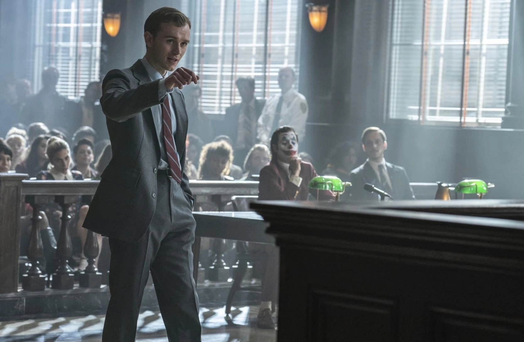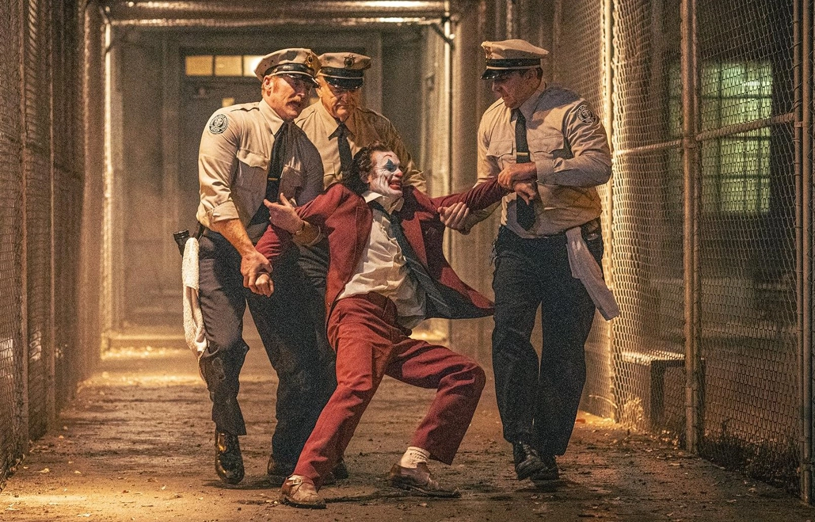 Although we don’t witness the violence, this triggers something in Arthur, leading him to confess before the jury that the Joker persona is nothing more than a fantasy—there is no other personality. A devastated Harley leaves the courthouse, later contemplating suicide as she listens to Arthur’s final message on her answering machine.