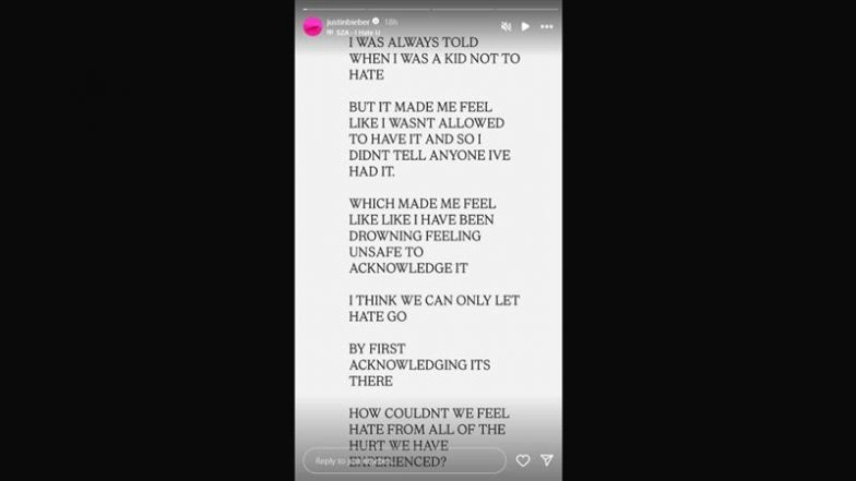Singer-songwriter Justin Bieber seems to be overwhelmed with the developments in his life, personal or professional life, that the singer hasn’t yet cleared. The singer reflected on his own emotions and shared a lengthy, all-caps musing on Instagram in which he admitted he felt like he was “drowning” as he said he must strive to “let hate go”, reports People magazine. Justin Bieber Grooves To Don Toliver Song As He Shares Video of Him Smoking, Singer Raises Concern With His Bizarre Behaviour.