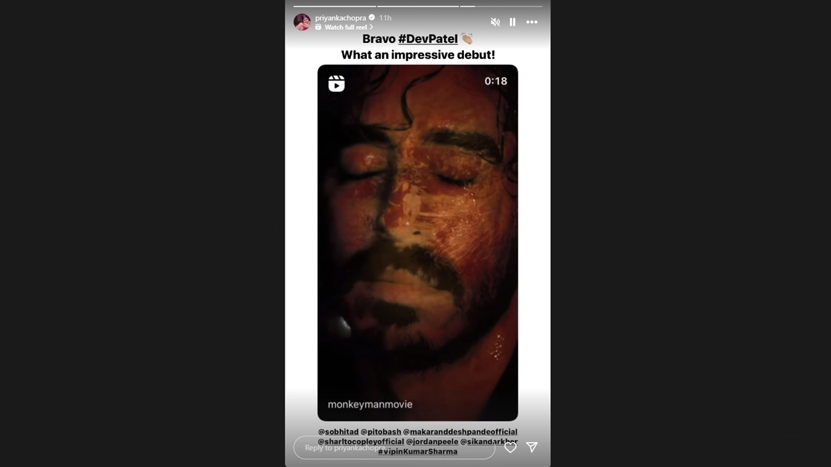 Actress Priyanka Chopra has praised Indian-origin British actor-filmmaker Dev Patel for his impressive debut as a director with Monkey Man. Priyanka took to Instagram stories and gave a shout-out to Patel and the film's cast, including Sikandar Kher and Sobhita Dhulipala. The actress wrote: “Bravo #DevPatel What an impressive debut!”. Monkey Man Review: Fans Hail Dev Patel's Performance in the Thriller, Laud His Talent As Storyteller.