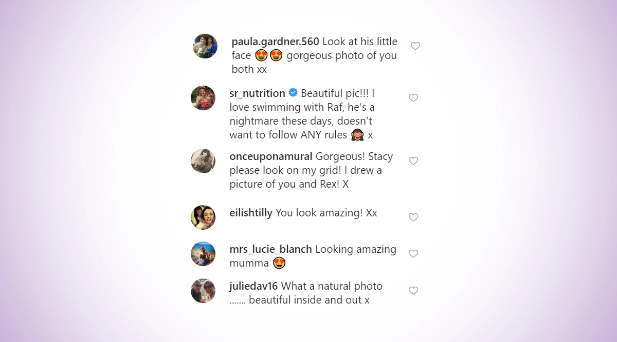 She looked confident in a black and white striped bikini as she posed on the edge of the pool with her son. On seeing the picture, social media users praised the "Breath Away" hitmaker. One user wrote: "What a natural photo." Ashley Graham Is Pregnant! Supermodel’s Big Reveal Comes via an Adorable Instagram Video And It Is a Must-Watch.