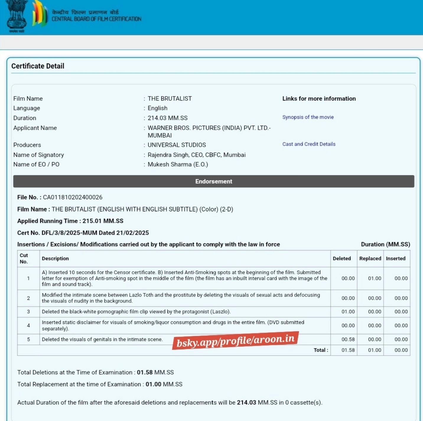 However, if you’re hoping to watch the film uncut, prepare for some disappointment. According to journalist Aroon Deep, The Brutalist has undergone significant edits, particularly involving nudity and sexual scenes, as mandated by the Central Board of Film Certification (CBFC), commonly known as the Indian Censor Board.