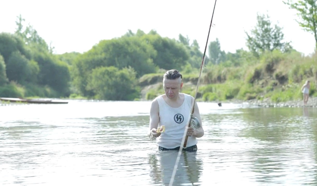 The wide frame also allows a couple of interesting visual quirks, such as when it needs to show how Rudolf Hoss's work life accidentally intrudes into his personal life. There is a scene where he is calming fishing in the middle of the brook, we see the burnt ashes from the camp slowly flowing towards him, much to his disgust.