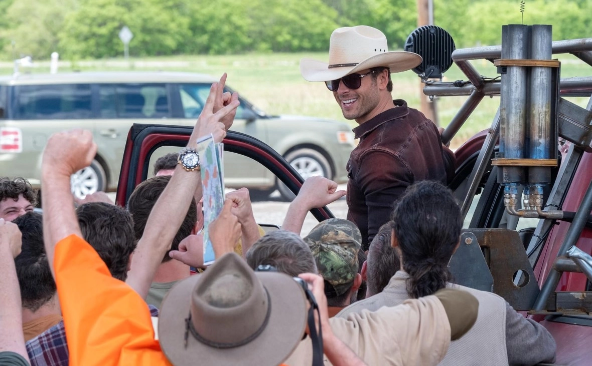 Javi's team is not the only one chasing the twisters; a group of YouTube enthusiasts from Arkansas, calling themselves the Tornado Wranglers and led by the flashy Tyler (Glen Powell), are also on the hunt. They are more interested in sending firecrackers up the tornadoes. Kate and Tyler start off as rivals, but as they encounter more tornadoes, they begin to appreciate and respect each other's work.