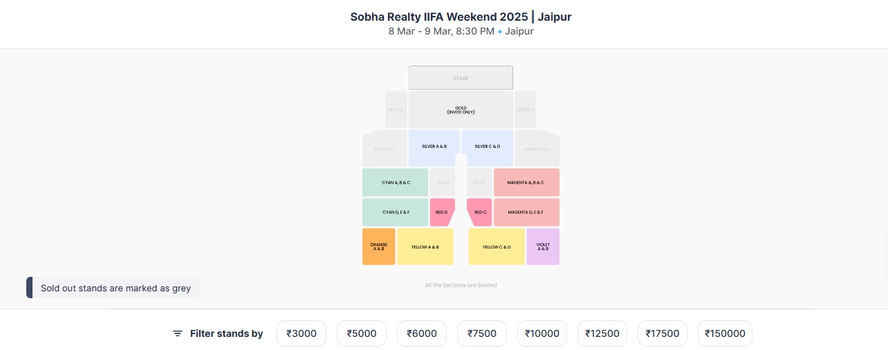 The official ticketing partner for IIFA Awards 2025 is District by Zomato, and tickets can be booked online. The IIFA Awards 2025 offers a range of ticket options for attendees. The most affordable ticket’, priced at INR 3,000, are available in ‘Phase 1 | Orange Block A and B’, providing a ‘seated section’ with entry for one person. On the other end, the ‘premium Early Bird tickets’, priced at INR 1,50,000, offer an ‘exclusive Silver Block A and B experience’, including a ‘2-night stay at The Lalit Jaipur with breakfast’, an ‘exclusive celebrity welcome video message’, a ‘daily F&B voucher worth INR 1,500, and ‘IIFA merchandise’ such as a tote bag and lanyard. Meanwhile, the ‘Gold category tickets’ are available strictly by ‘invite only’, making them a highly exclusive option for select attendees.